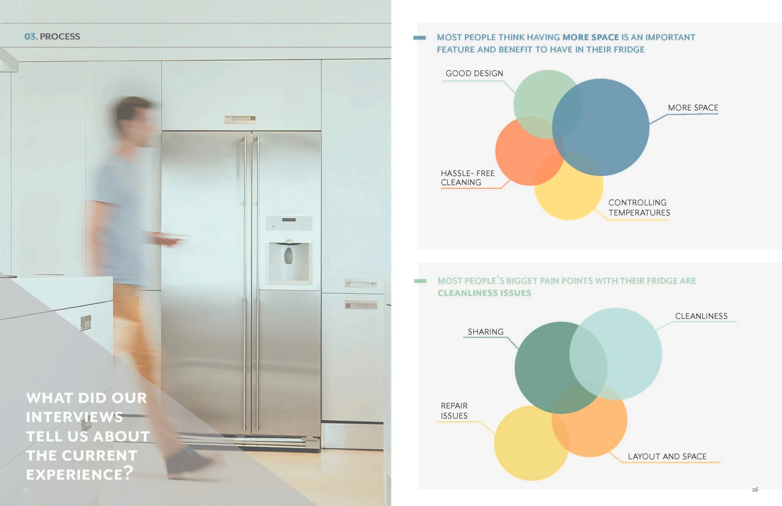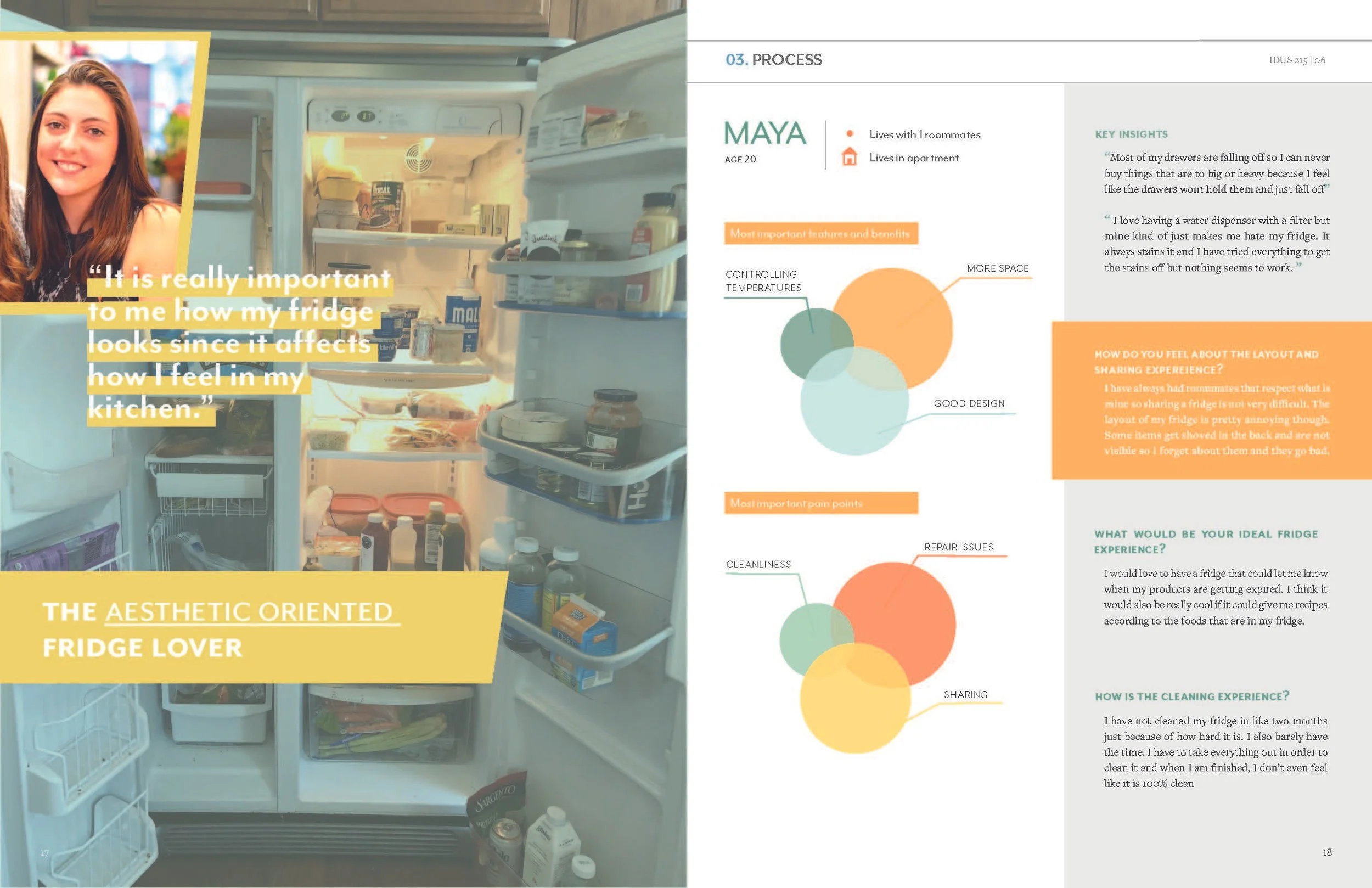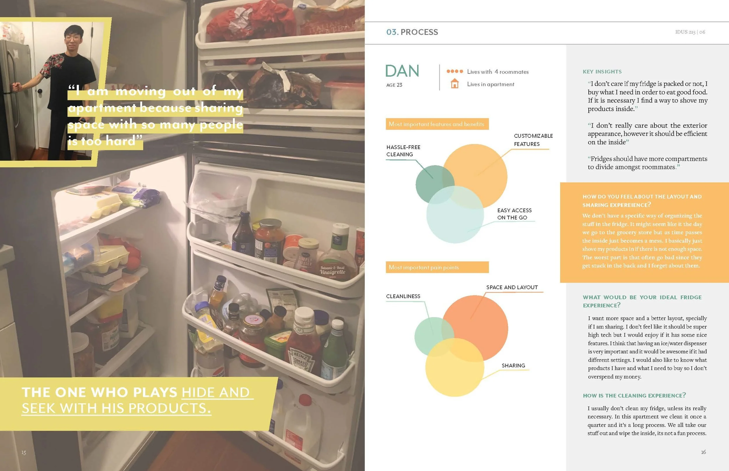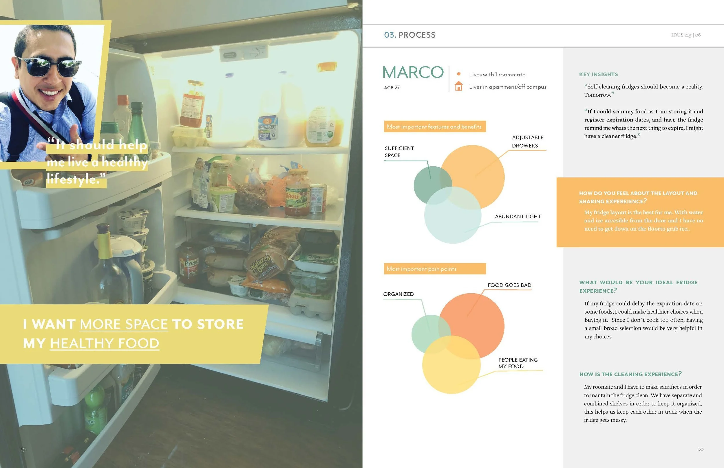 This magazine reveals the studies that were found while conducting contextual research. The information provides an understanding of the user’s current experience and frames ideas to create the ideal experience of sharing and using a refrigerator.