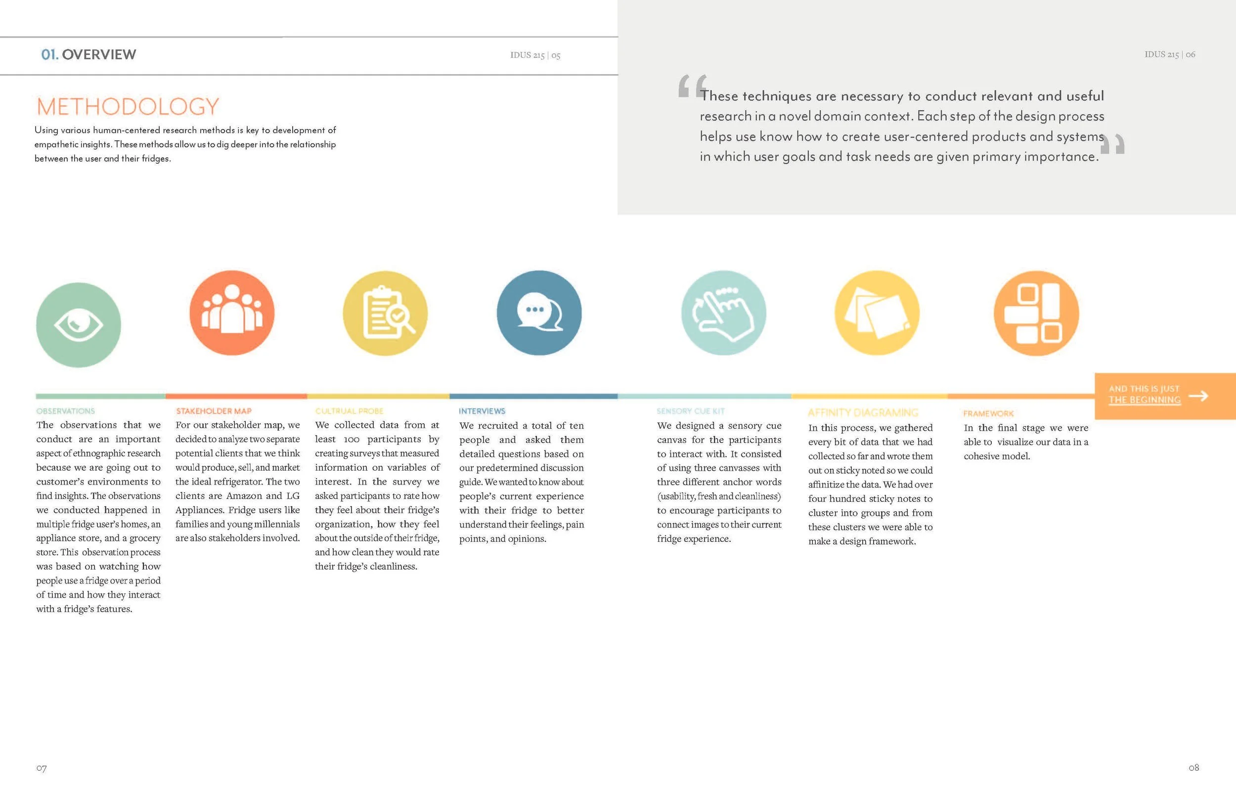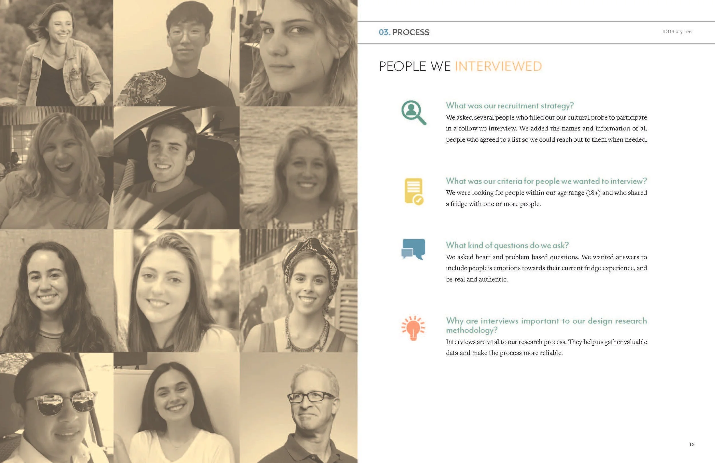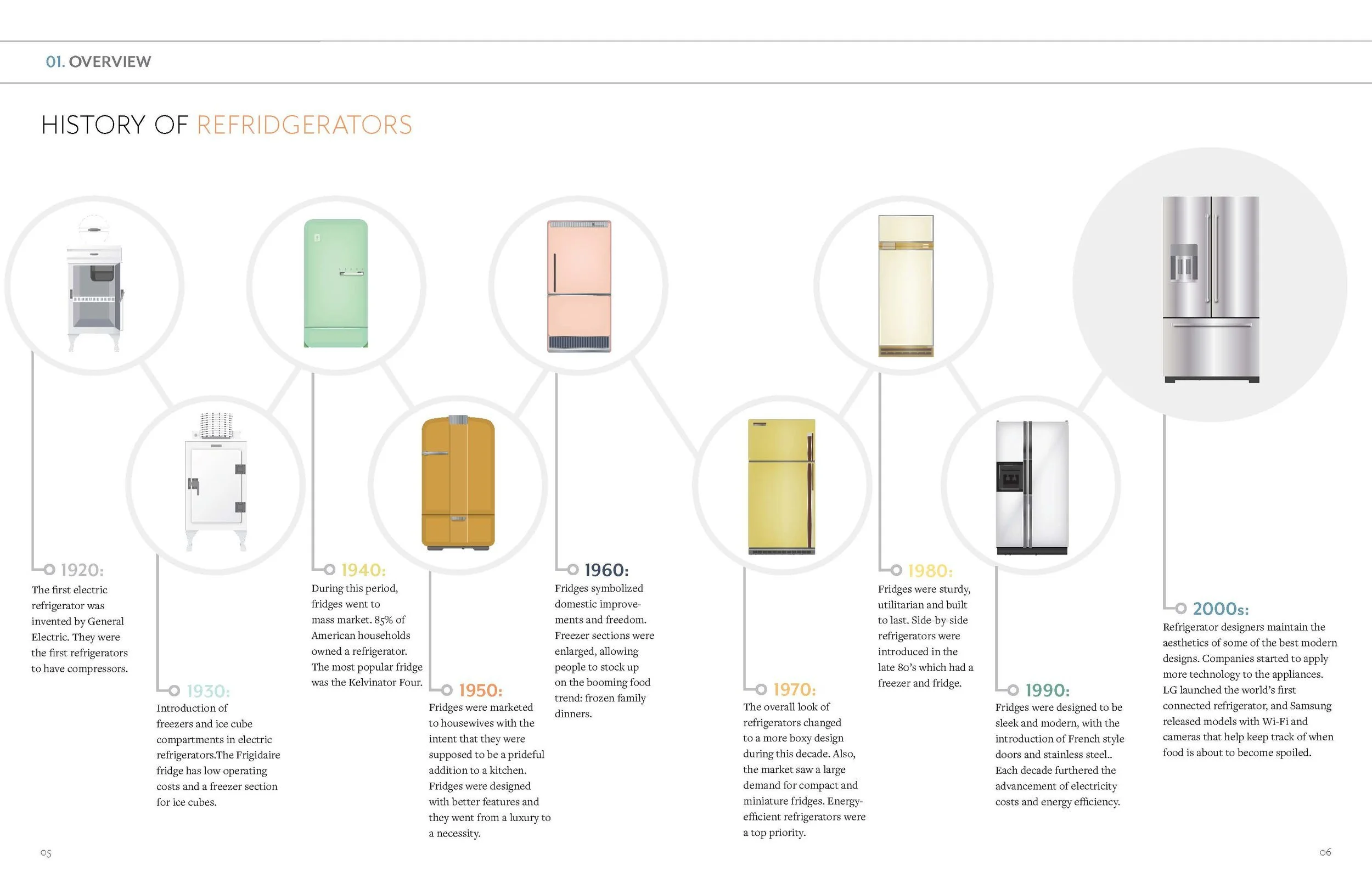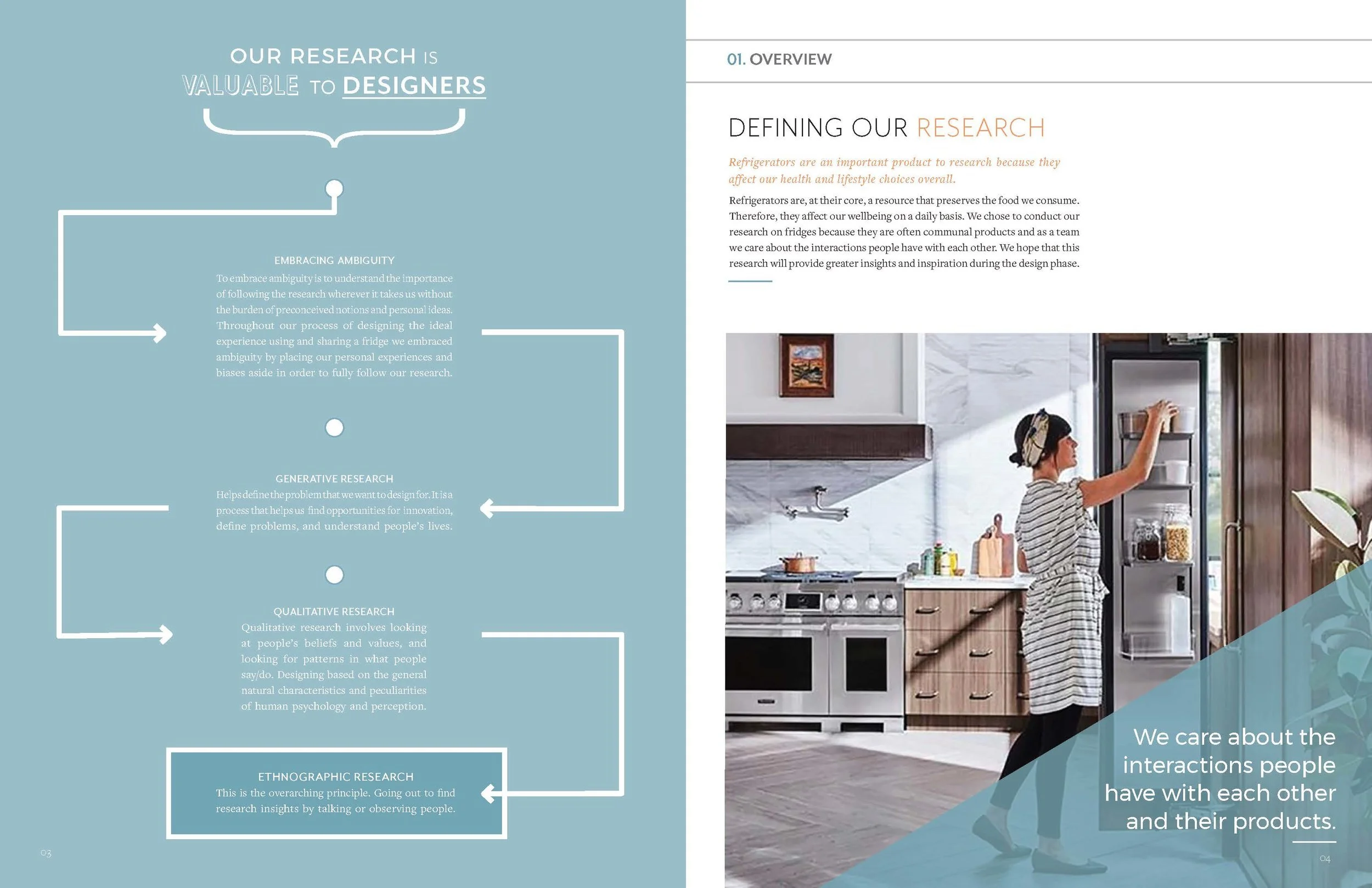 This magazine reveals the studies that were found while conducting contextual research. The information provides an understanding of the user’s current experience and frames ideas to create the ideal experience of sharing and using a refrigerator.