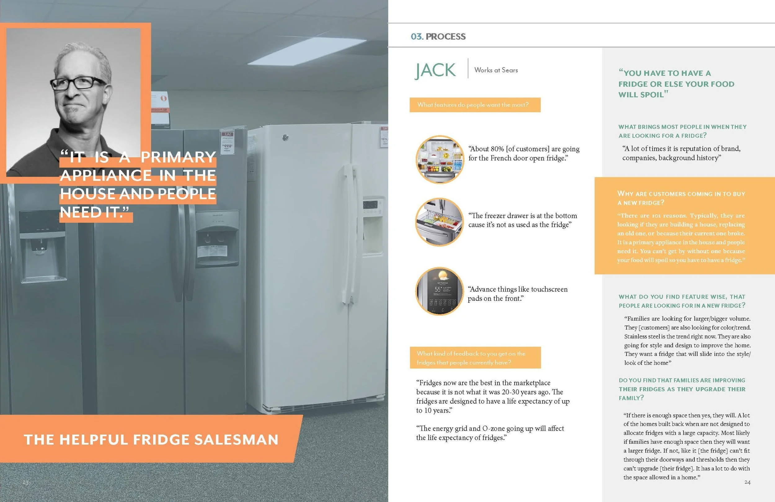 Observations were conducted in appliance stores, homes of fridge users, and at grocery stores. Our team conducted 14 interviews with a diverse group of people.